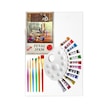 Guaj Boya Hobi Boyama Seti 35 x 50 CM Tuval 12li Guaj Boya Tüp Resim Paleti ve Fırça Seti 6lı Çok Renkli