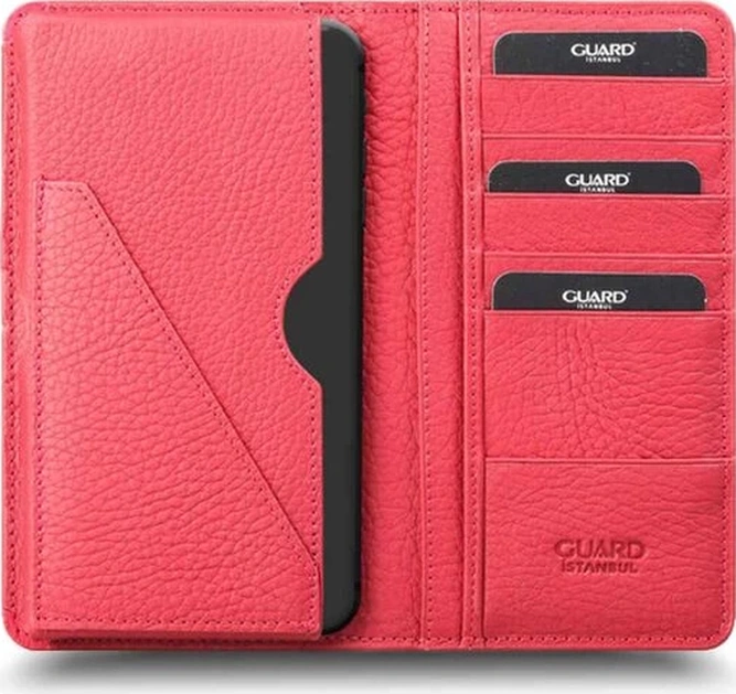 Guard Telefon Girişli Kırmızı Deri Unisex Cüzdan Çok Renkli