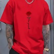 Guılan Erkek Yazlık %100 Pamuk Spor Tişört - Kırmızı Gül Desenli, Rahat Ve Gevşek Fit Kirmizi