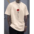 Guılan Erkek Yazlık %100 Pamuk Spor Tişört - Kırmızı Gül Desenli, Rahat Ve Gevşek Fitbej Bej