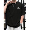 Guılanerkek Yazlık %100 Pamuk Rahat Gevşek Mektup Dağ Baskılı Kısa Kollu Tişörtbej Bej