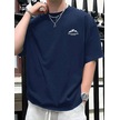 Guılanerkek Yazlık %100 Pamuk Rahat Gevşek Mektup Dağ Baskılı Kısa Kollu Tişörtmavi Mavi