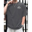 Guılanerkek Yazlık %100 Pamuk Rahat Gevşek Mektup Dağ Baskılı Kısa Kollu Tişörtpembe Pembe
