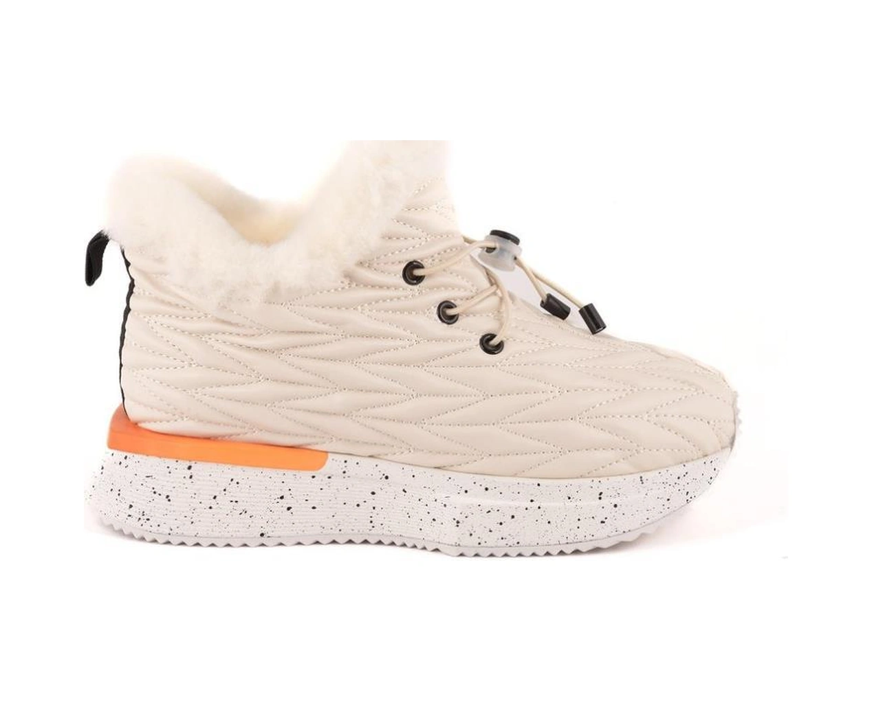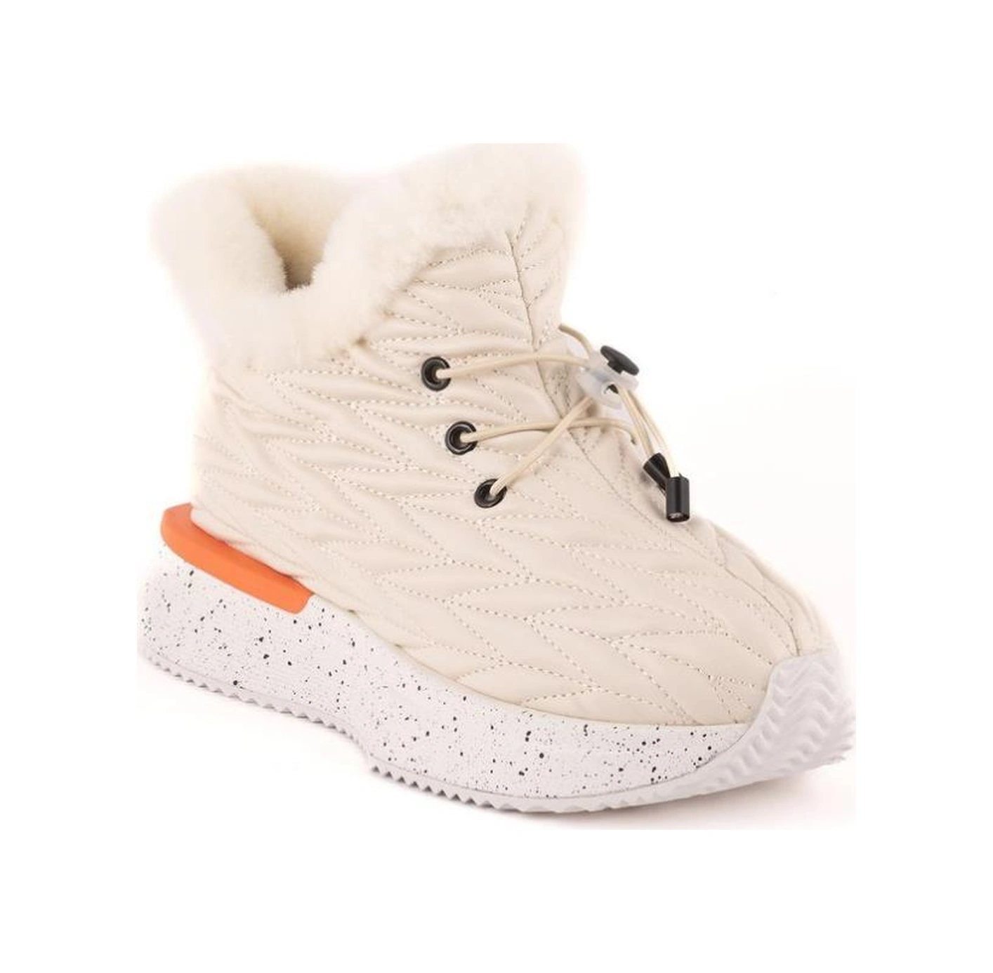Guja 24k326 Kalın Taban Kapitoneli Kürklü Kadın Kar Botu Bej