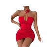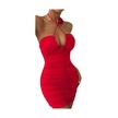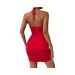 Gül Detaylı Göğüs Dekolteli Yanlardan Büzgülü Bodycon Elbise Kırmızı