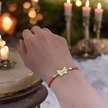 Gül İsmine Özel 14 Ayar Altın Plakalı Turuncu Derili Kelebek Motifli Hediye Bileklik-502isim Gül