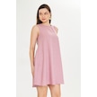 Gül Kurusu Keten Karisimli Yazlık Sifir Kollu Çan Elbise Açık Pembe