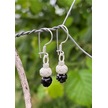 Gül Motifli Gümüş Kazaziye Sallantılı Küpe Siyah