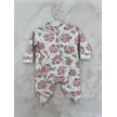 Güllü Çiçek Empirme Şapkalı Zıbın Pembe