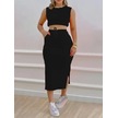 Gülsüm Aydın Kadın Iki Iplik Crop Etek Ikili Takım Siyah