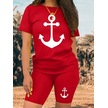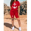 Gülsüm Aydın Kadın Kısa Kollu Çapa Baskılı Viskon Ikili Takım Kırmızı