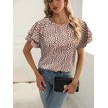 Gülsüm Aydın Kadın Kısa Kollu Kolları Volanlı Baskılı Süprem Bluz Pembe