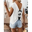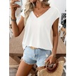 Gülsüm Aydın Kadın Kısa Kollu V Yakalı Arkadan Kurdele Detaylı Viskon Bluz Beyaz