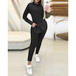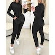 Gülsüm Aydın Kadın Uzun Kollu Kapşonlu Yakadan Bağcıklı Yandan Yırtmaçlı Üst Bluz Alt Tayt Şardonlu Kaşkorse Ikili Takım Siyah