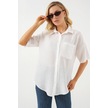 Gülsüm Aydın Kısa Kol Keten Görünümlü Gömlek 20336 - Beyaz Beyaz