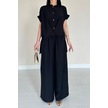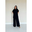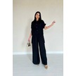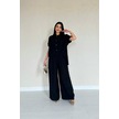 Gülsüm Aydın Siyah Önü Pileli İkili Keten Takım Siyah