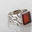 Gümüş Akik Taşlı Kare Model Erkek Yüzük