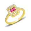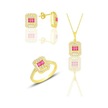 Gümüş Altın Yaldızlı Baget Kesim Kök Yakut Taşlı Çizgili Üçlü Se