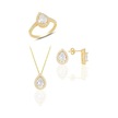 Gümüş Altın Yaldızlı Zirkon Taşlı Damla Modeli Üçlü Set