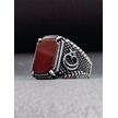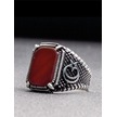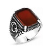 Gümüş Ay Yıldız Desenli Kare Akik Taşlı Erkek Yüzük