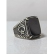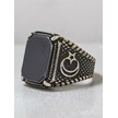 Gümüş Ay Yıldız Model Kare Oniks Taşlı Erkek Yüzük
