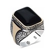 Gümüş Desenli Siyah Taşlı Köşeli Erkek Yüzük - 556659429