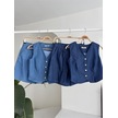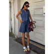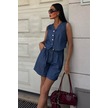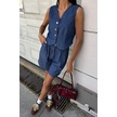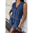 Gümüş Düğmeli Yelek Ve Şort Tensel Takım 10174 Koyumavi