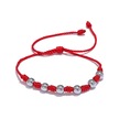Gümüş Eetit Unisex 7 Knot Şanslı El Yapımı Dokuma Takı Hediye Moda Paslanmaz Çelik Boncuk Kırmızı Halat Örgülü Kader Dilek Bilezik Bileklik Gümüş