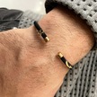 Gümüş Harf Detaylı Siyah Çelik Bileklik