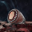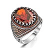 925 Ayar Gümüş Oval Kırmızı Akik Taşlı Örgü Desenli Erkek Yüzük - 554220170