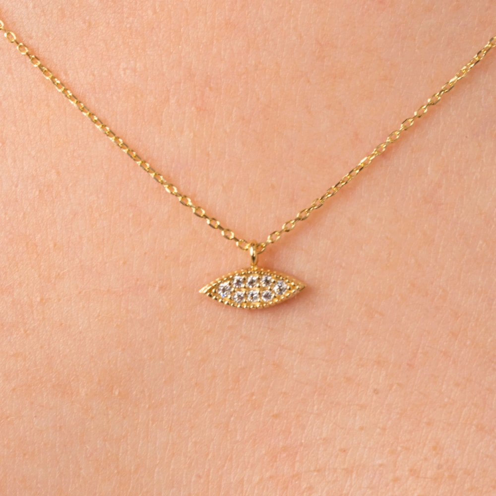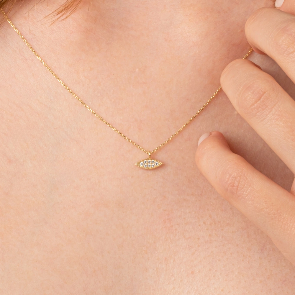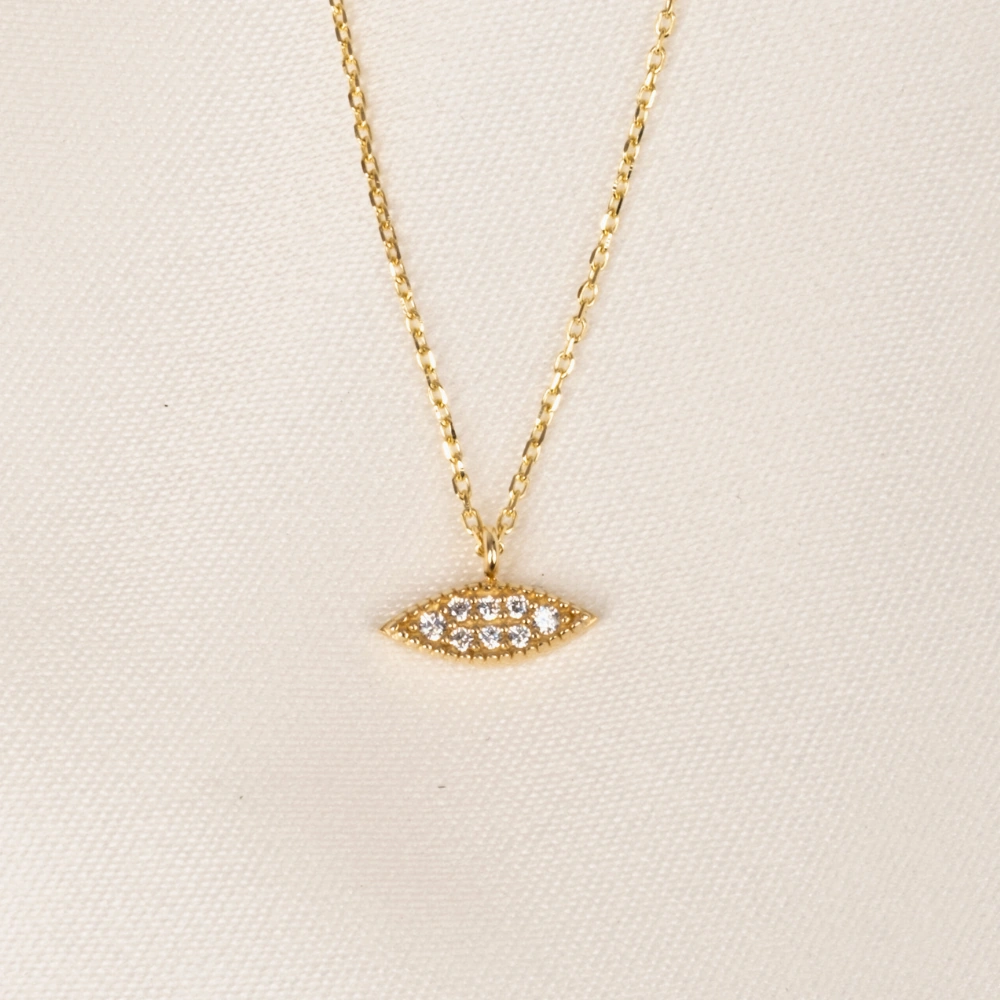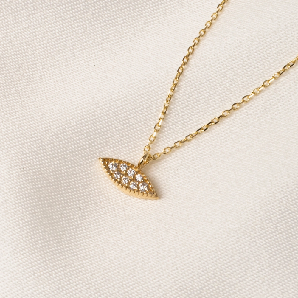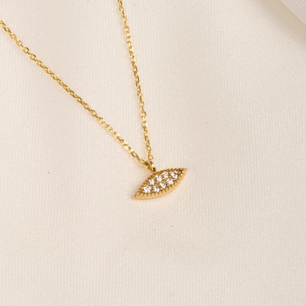 Gümüş Kolye - Mekik Taşlı Tasarım 925 Ayar Gümüş Kolye Sarı