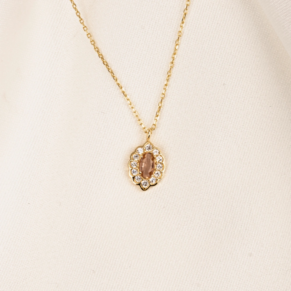 Gümüş Kolye - Zultanit Oval Taşlı 925 Ayar Gümüş Kolye Sarı