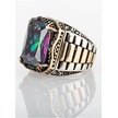 Gümüş Mistik Topaz Taşlı Saat Kordon Model Erkek Yüzük