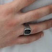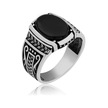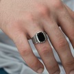 Gümüş Oniks Taşlı Örgü Desenli Erkek Yüzük - 555896279