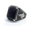 Gümüş Pençe Model Tuğra Desenli Kare Oniks Taşlı Erkek Yüzük