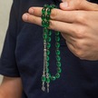 Gümüş Püsküllü Yeşil Ateş Kehribar Tesbih Sl12501 Gümüş