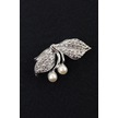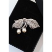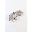 Gümüş Renk Fiyonk İnci Broş. Kristal Taşlı Tasarım İncili Fiyonk Yaka İğnesi Erkek Kadın Broş Gümüş