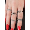 Gümüş Renk Lotus Model Siyah Kristal Taş Detay Bayan Yüzük Kombin Çok Renkli