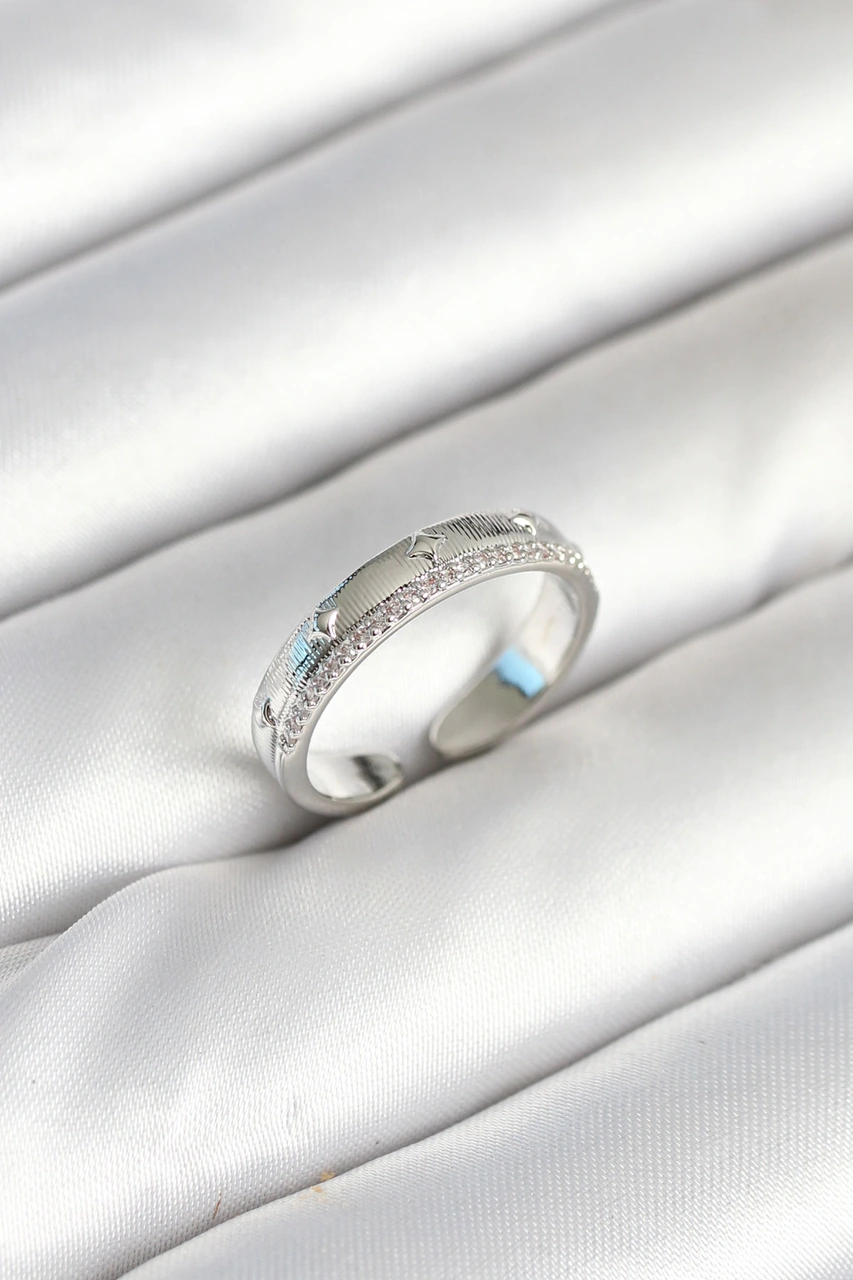 Gümüş Renk Şerit Zirkon Taşlı Kadın Yüzük Beyaz