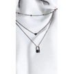 Gümüş Renk Üç Katlı Kalp Ve Kilit Detaylı Kadın Kolye Minimal A