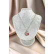Gümüş Renkli Kırmızı Taş Detaylı Çelik Kolye Gümüş