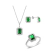 Gümüş Rodyumlu Kök Zümrüt Baget Taşlı Üçlü Set