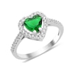 Gümüş Rodyumlu Yeşil Taşlı Pırlanta Montürlü Kalp Modeli Yüzük
