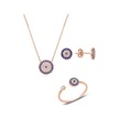 Yeşil Zirkon Taşlı Gold Rengi 925 Ayar Gümüş Kadın 3'lü Set Gold