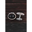 Gümüş Siyah Onix Taşlı Oval Kol Düğmesi -5800 Gümüş
