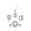 Gümüş Tek Taş Baget Set Kolye Yüzük J Küpe Wss12