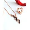 Gümüş V Tasarım Kolye Gold Kalp Küpe Işıltılı Kadın Set