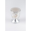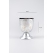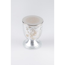 Gümüş Varak Eskitme Ayaklı Cam Mumluk Kokusuz Mum Logo Kapaklı Küçük 8.5x11.5 Cm