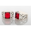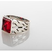 Gümüş Yakut Renkli Baget Kesim Zirkon Taşlı Kare Model Erkek Yüzük
