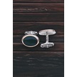 Gümüş Yeşil Akik Taşlı Oval Kol Düğmesi -5797 Gümüş